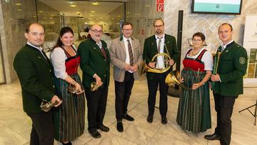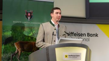 Gleich zwei Jagdhornbläsergruppen, die Jagdhornbläser-Gruppe Oberlaa und die Jagdmusik Leopold Figl umrahmten die Veranstaltung im Festsaal der Raiffeisenbank International am Wiener Stadtpark, zu der Walter eine Reihe hoher und höchster Ehrengäste begrüßen konnte. So hieß er im Namen aller Bezirksjägermeister seinen Stellvertreter Bezirksjägermeister Thomas Schön ebenso herzlich willkommen, wie seinen Stellvertreter als Präsident der LK Wien, Vizepräsident Martin Flicker, die Wiener Weinkönigin Iris-Maria Wolff sowie die Professoren der Universität für Bodenkultur Klaus Hackländer und Martin Gerzabek. Ehrengast Alexander Bernhuber, Abgeordneter zum Europäischen Parlament, reiste direkt „von der letzten Sitzung des Parlaments in dieser Periode“ aus Straßburg an und verwies in seiner Grußbotschaft auf die Tatsache, dass eine Reihe von Gruppierungen auf europäischer Ebene der Jagd ganz und gar nicht wohlgesonnen seien. Doch eine eigene „Arbeitsgruppe Jagd“, an der Bernhuber intensiv mitgearbeitet hat, hat es sich zur Aufgabe gemacht, die Anliegen und Forderungen der Jägerinnen und Jäger in die europäischen Entscheidungsgremien zu tragen und auch durchzusetzen. Bernhuber: „Jagd und Europa gehören zusammen.“