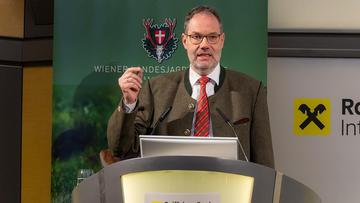 Landesjägermeister Walter informierte die Delegierten in seinem anschließenden Bericht darüber, dass es seit 1. Jänner 2023 im Rahmen des Fuchsmonitoring eine Abgabepflicht beim Forschungsinstitut für Wildtierkunde und Ökologie (FiWi) gibt. Dort werden die Füchse auf Staupe, Fuchsbandwurm, Räude, Tollwut, Übertragungen durch Zecken und auf den Mageninhalt untersucht; letzteres, um Hinweise auf die Ernährung zu erhalten. Nächster Berichtspunkt: Die Erarbeitung der von der Stadt Wien beauftragten „Wildökologischen Raumplanung“ schreitet weiter voran. Ein Fragebogen wurde mittlerweile erstellt, der Besuch in den Revieren wird der nächste Schritt sein, so Walter in seiner Rede.